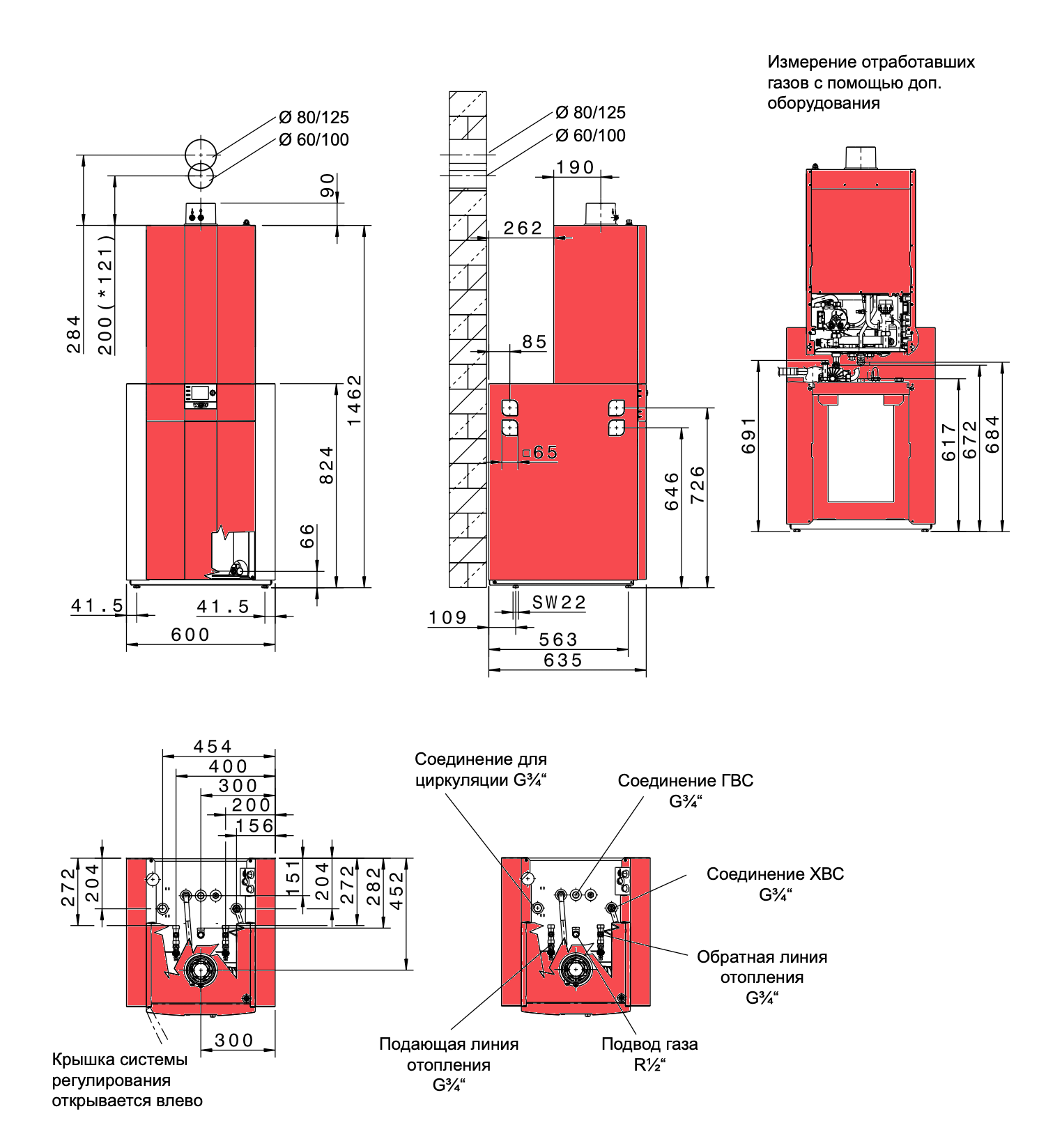 Котел имеет компактные габариты и может быть разделен на два модуля для удобства монтажа. Объем встроенного водонагревателя составляет 90 литров, что эквивалентно 200 литрам при косвенном нагреве. Система TurboStop обеспечивает быстрый нагрев воды, а низкие теплопотери делают использование экономичным.