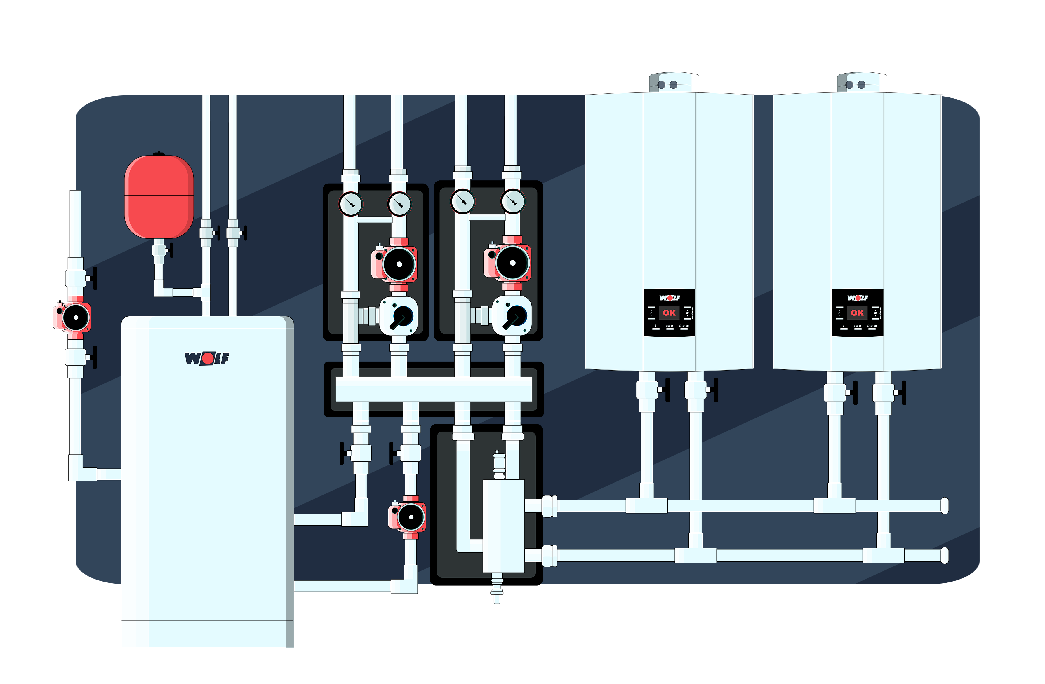 Комплект прохода через стену предназначен для организации горизонтального выводакоаксиального дымохода для котлов Wolf. Включает все необходимые компоненты для монтажа: трубы, крепежные элементы, уплотнители. Диаметр DN60/100 обеспечивает эффективный отвод продуктов сгорания и забор воздуха для горения. Комплект подходит для монтажа на стенах из различных материалов, обеспечивая герметичность и безопасность подключения.