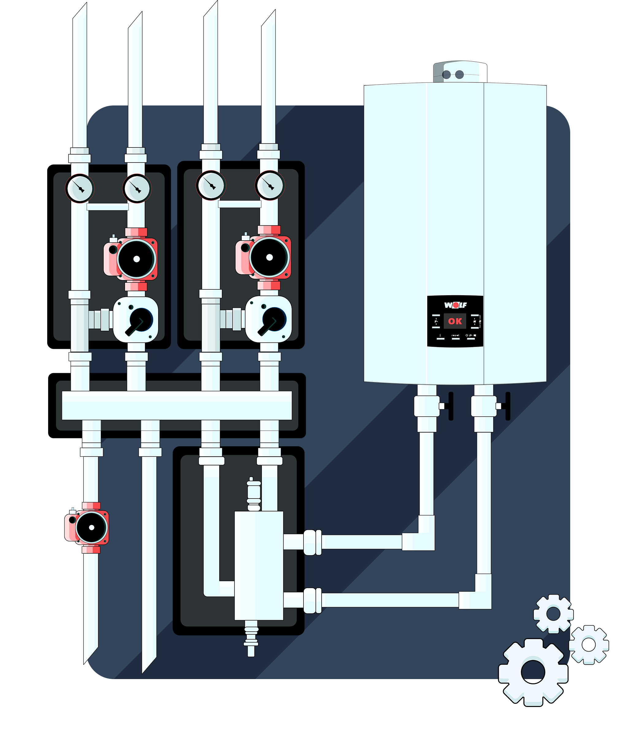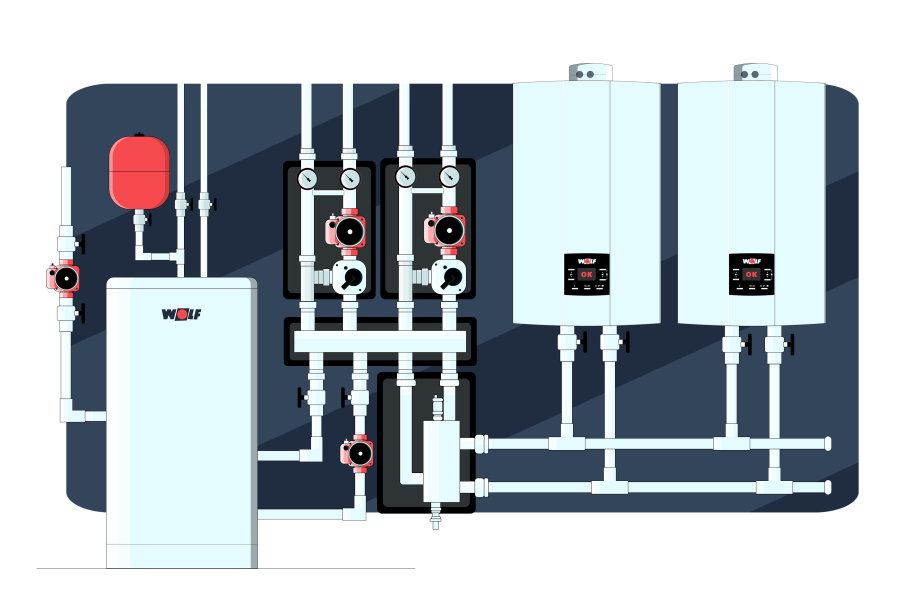 Наша компания является официальным партнером и предлагает профессиональный монтаж систем отопления и котельных на базе высокотехнологичного оборудования Wolf. Мы гарантируем, что в вашем доме будет по-настоящему комфортно и тепло. Создание уютного жилья — это базовая потребность, поэтому мы предлагаем комплексный подход: от подбора надежной техники до ее пусконаладки.